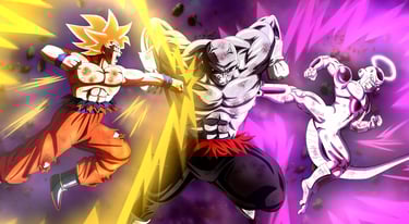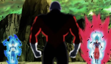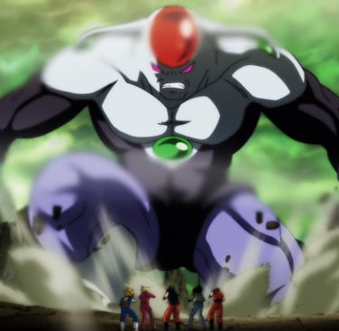 Com o tempo se esgotando e poucos guerreiros restantes, o Torneio do Poder alcança sua fase mais dramática. Apenas os Universos 7 e 11 permanecem. Goku e Vegeta enfrentam Jiren em um combate brutal. Empenhado em superar seus próprios limites, Vegeta desperta o Super Saiyajin Blue Evolution, uma evolução do Blue comum, com aura intensa e eletricidade azulada. Junto com Goku usando o Super Saiyajin Blue Kaioken, os dois lançam um ataque conjunto contra Jiren.