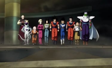 A equipe do Universo 7 se reúne no Mundo do Vazio, onde os guerreiros dos outros universos também se apresentam. Cada universo mostra seus campeões: o Universo 6 vem com Caulifla, Kale e Hit; o Universo 11 impressiona com a Tropa do Orgulho, incluindo Toppo, Dyspo e o temível Jiren. O clima é pesado; todos sabem o que está em jogo. Zen'oh e o Sumo Sacerdote explicam as regras: a luta será uma batalha real, sem matar os adversários. Quem cair da arena será eliminado, e o universo com todos os guerreiros derrotados será apagado da existência.