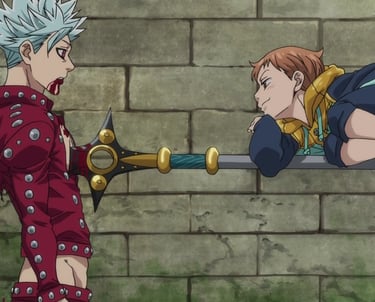 Ban traz consigo um senso de humor sarcástico e um espírito selvagem, contrastando com o comportamento mais contido de Meliodas. A interação entre os personagens começa a moldar a identidade do grupo, revelando tanto sua força quanto suas fragilidades emocionais.